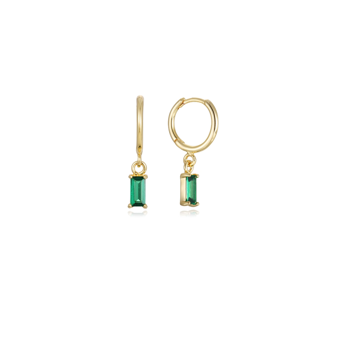 Chic and vibrant, these gold-plated huggies feature a striking emerald-green stone that adds a pop of color to any look. Lightweight and elegant, they’re perfect for day to night.