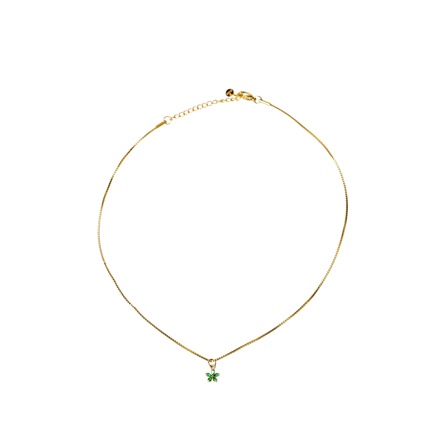 A dainty pendant of emerald flowers hangs gracefully on a delicate gold chain. Effortlessly romantic, this necklace adds a touch of nature-inspired charm to any outfit.