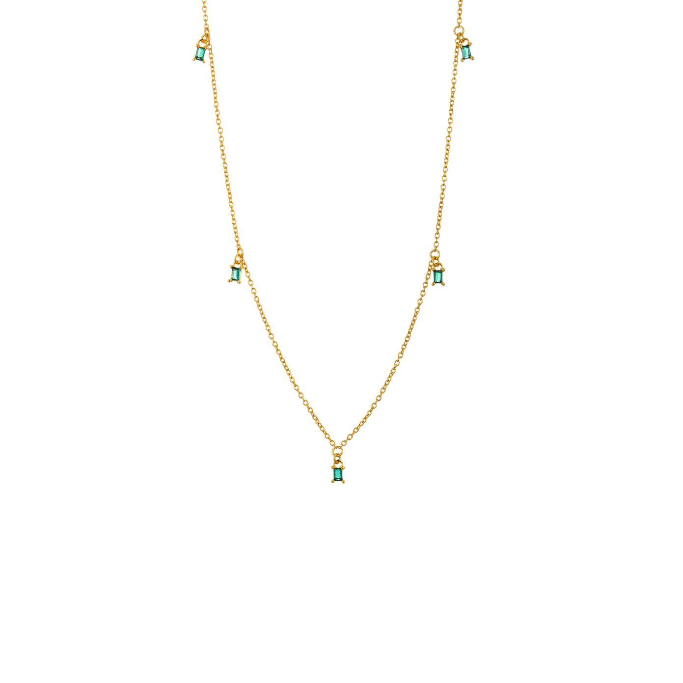 The Isla Necklace is where subtle elegance meets coastal charm. Featuring delicate emerald-green baguette stones set along a dainty gold chain, this necklace shimmers beautifully with every move. Its minimalist yet striking design makes it the perfect layering piece or a standout on its own. Inspired by ocean hues and golden sunsets, the Isla Necklace adds a refined pop of color to any outfit.