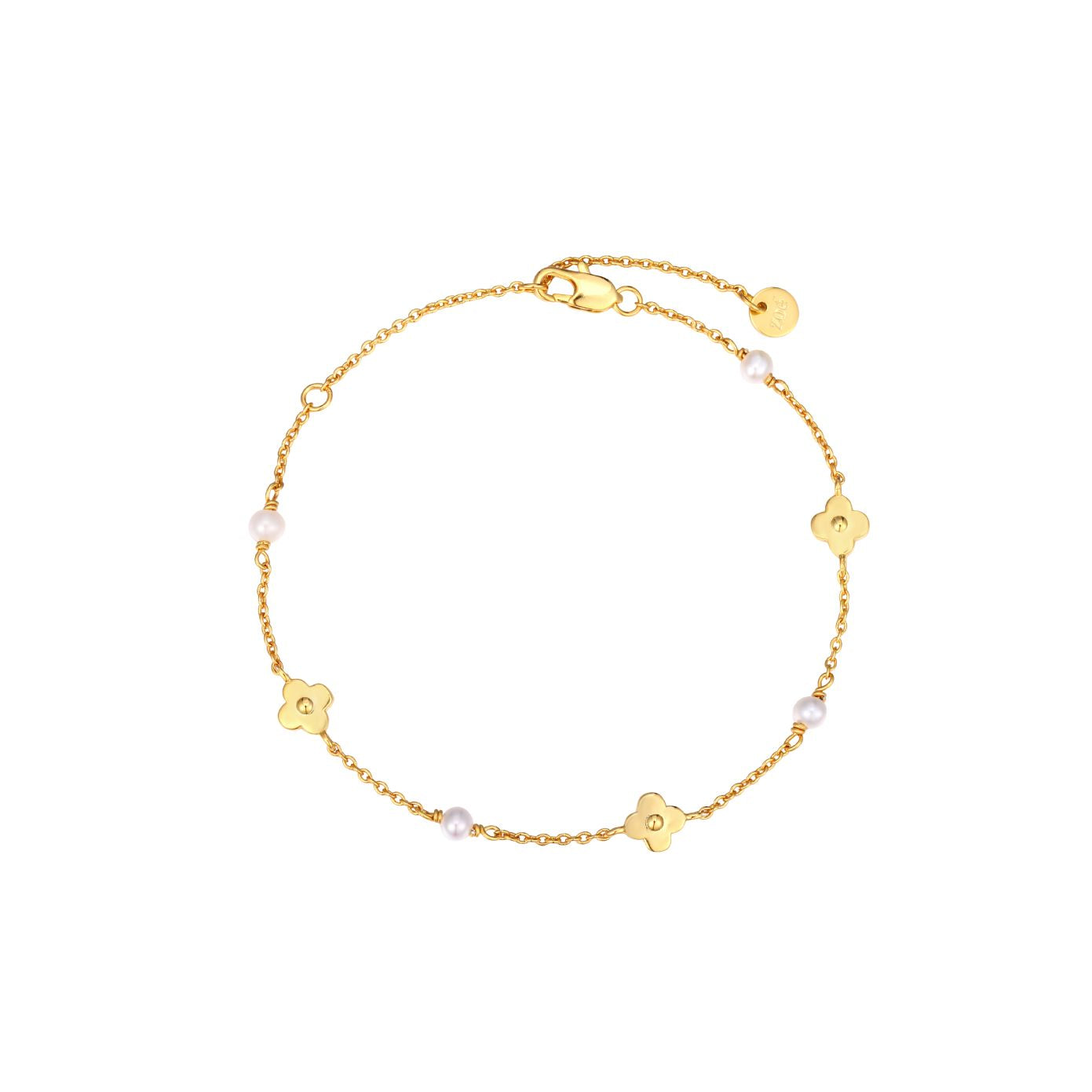 Delicate and elegant, the Amara Bracelet features a charming pattern of floral charms and lustrous pearls, three flowers followed by four pearls—for a graceful, eye-catching design. Lightweight and versatile, it’s perfect for layering with other bracelets or wearing solo for a subtle, feminine touch. Ideal as a thoughtful gift or a stylish addition to your everyday jewelry collection.