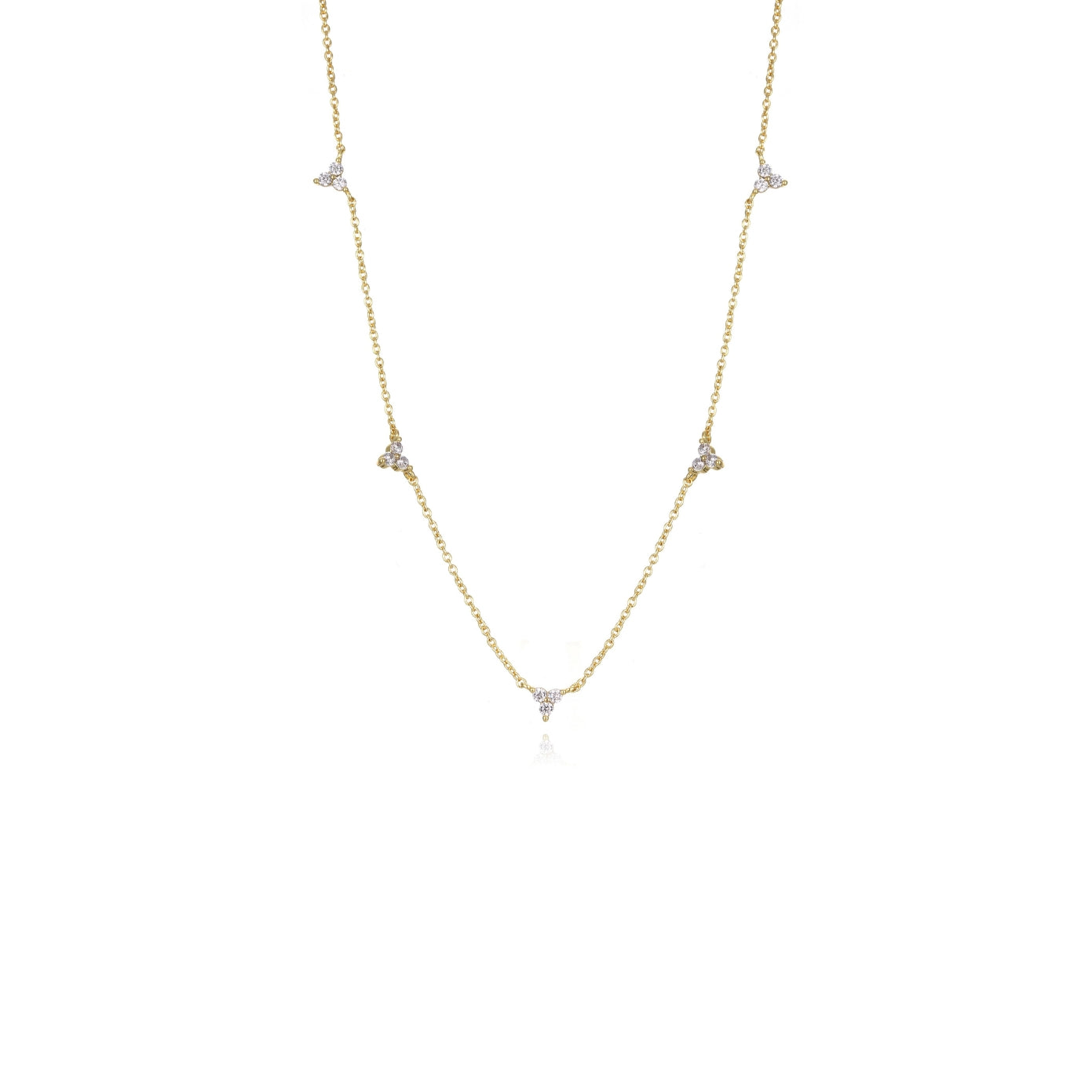 The Hailey Necklace is a must-have with its sparkling CZ flower details, perfectly spaced along a sleek chain. This piece brings effortless glamour, adding a chic touch to any outfit with that “it girl” energy. Perfect for layering or wearing solo.